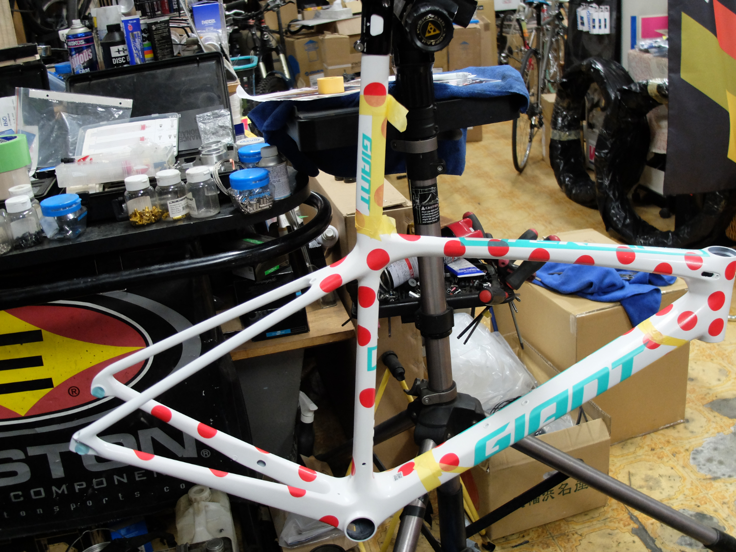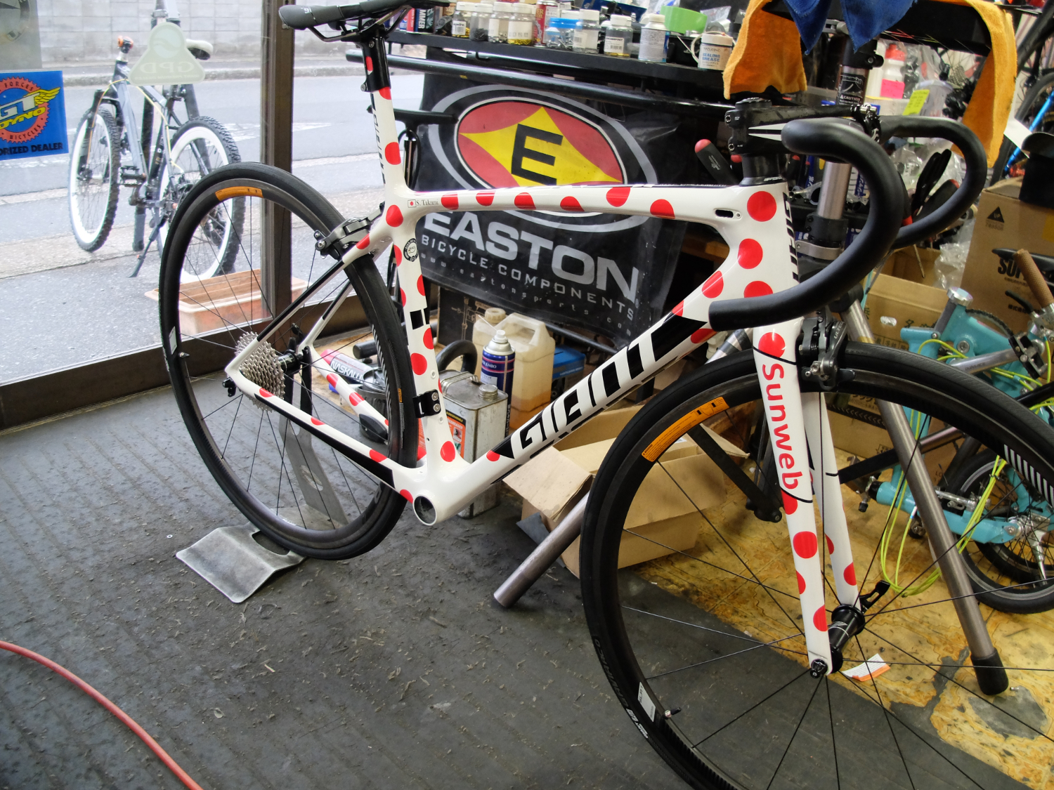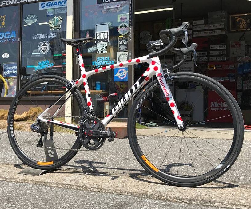 佐藤拓海選手は、以前はGIANT TCR SL フレーム 山岳賞モデル カスタムペイントを乗っておりました。ペイントは当店が特別に施したスペシャルモデルです。レース会場で見たことがある方も多いのではないでしょうか。